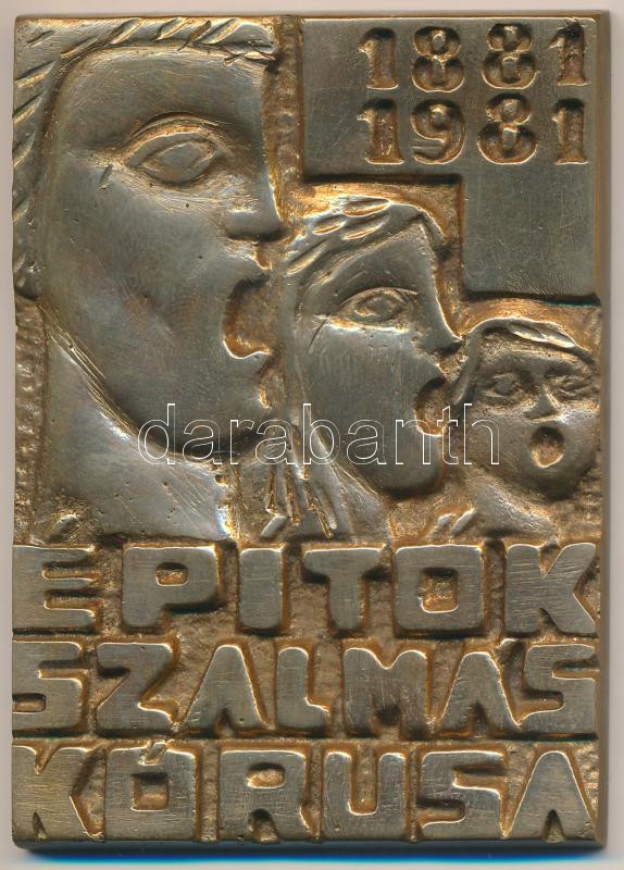1981. "Építők Szalmás Kórusa 1881-1981" Br plakett, eredeti sérült dobozban (57x80mm) T:2