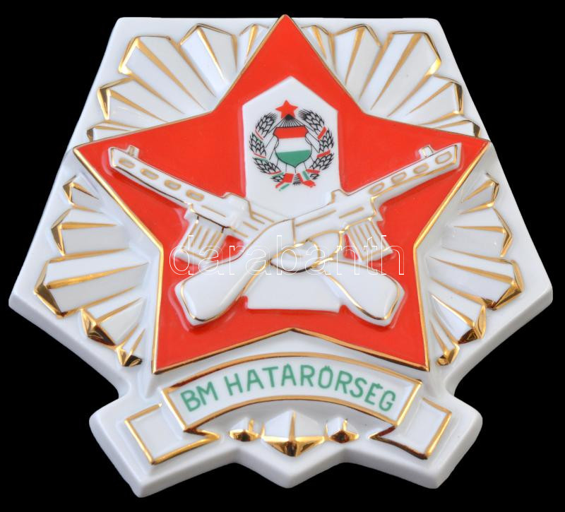 ~1970. "BM Határőrség" jelzett hollóházi porcelán plakett (151x158mm) ...