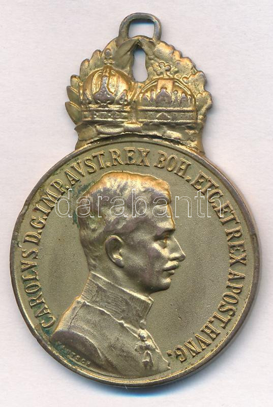 1917. "Károly Bronz Katonai Érdemérem" aranyozott Br kitüntetés, "BRONZE" fémjel a peremen, mellszalag nélkül, kopott aranyozás T:2 ph., kis patina Hungary 1917. "Bronze Military Merit Medal" gold plated Br decoration, with "BRONZE" hallmark on the edge, without ribbon, worn gilt C:XF edge error, small patina NMK: 326.