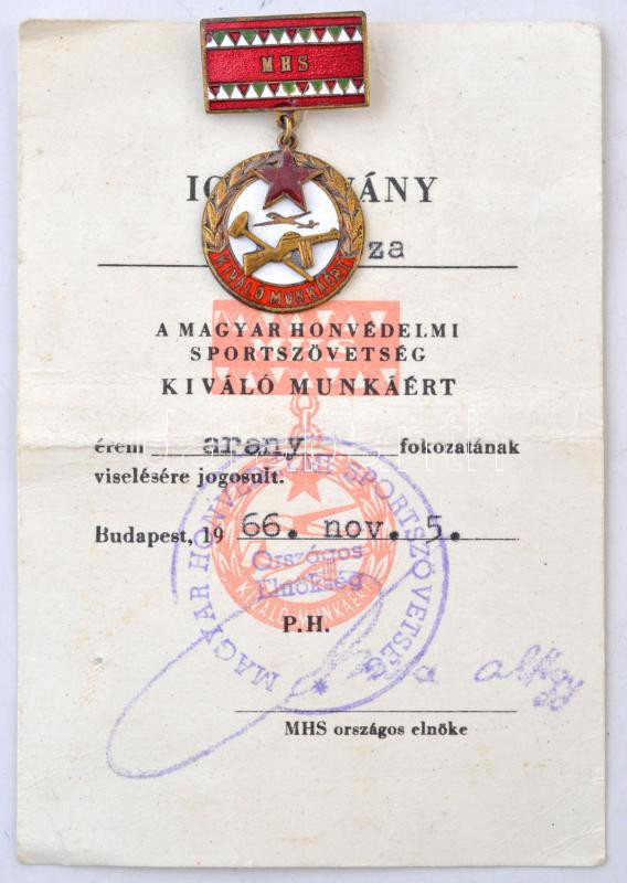 1966. "Magyar Honvédelmi Sportszövetség Kiváló Munkáért" kitüntetés ar...