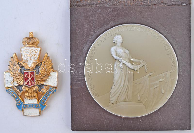 Russia ND "St. Petersburg" enamelled badge + Soviet Union ND "Siege of Leningrad 1941-1944" enamelled Al commemorative medallion in leathler case (58mm) C:UNC,XF