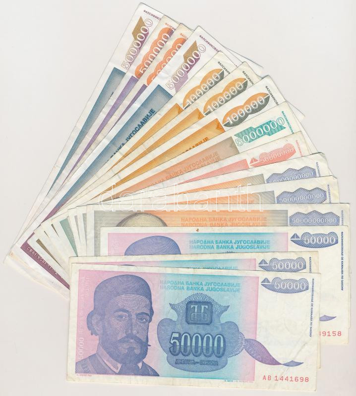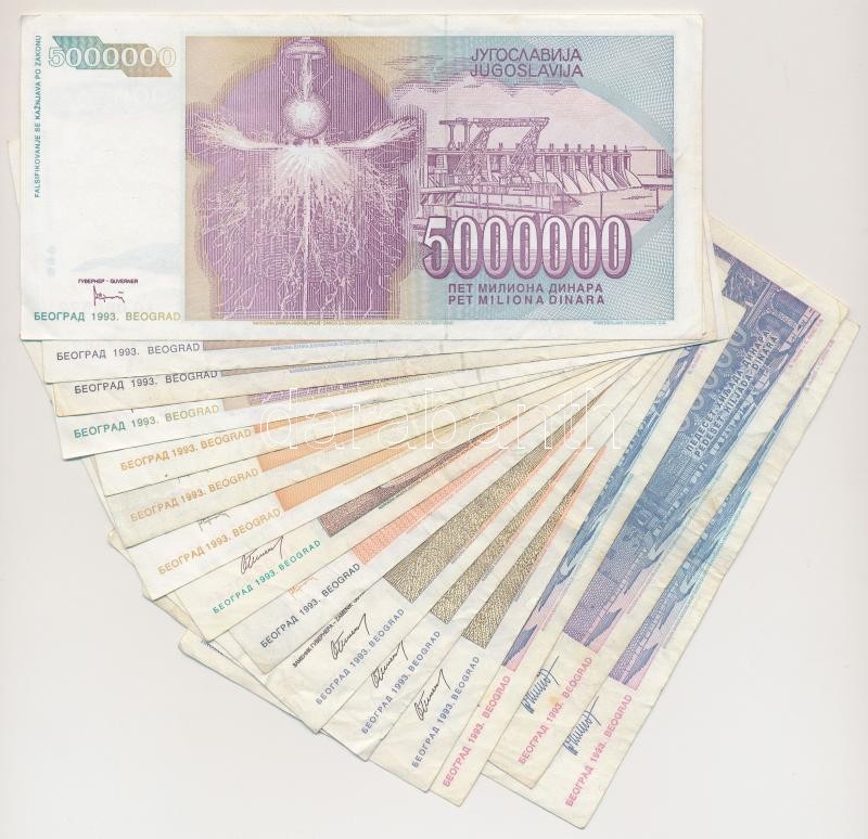 Jugoszlávia 1993. 50.000D-50.000.000.000D (15x) T:III