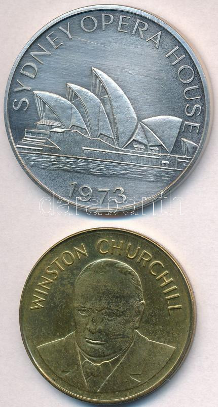 Ausztrália 1973. "Sydney-i Operaház 1973 / Australia" fém emlékérem (40mm) + Nagy-Britannia DN "Winston Churchill / Blenheim Palace" aranyozott fém emlékérem T:2