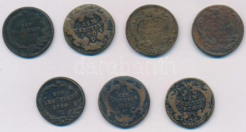 Ausztria 1760-1780. 1kr Cu (7x) klf verdejelekkel (W,H,P) T:2-,3