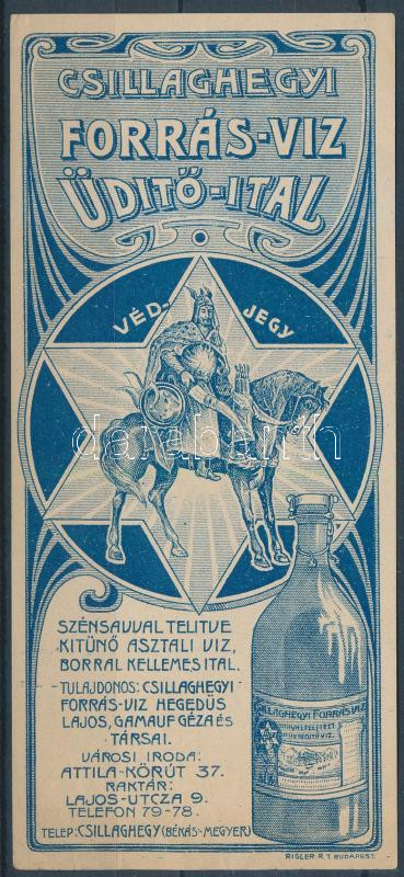 cca 1910 Csillaghegyi forrásvíz reklámos számolócédula