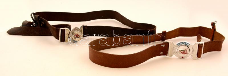 Úttörő övek, 2 db, h: 89 cm és 127 cm.
