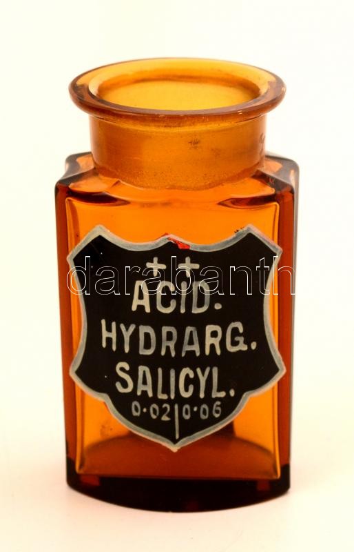 3 db gyógyszeres üvegcse, az egyik csorbákkal, különböző méretben