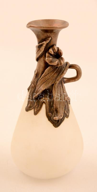 Muranói fém rátétes üveg váza, hibátlan, m: 16 cm