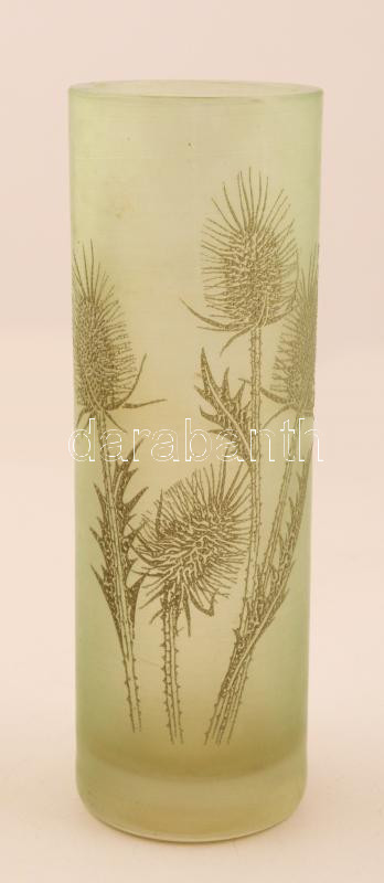 Opálüveg váza, bogáncsos díszítéssel, hibátlan, m: 24 cm, d: 8 cm
