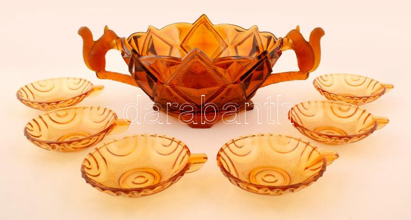 Puncs készlet, formába öntött, apró csorba a nagy tálon, 36×26 cm, d:12 cm (6×)