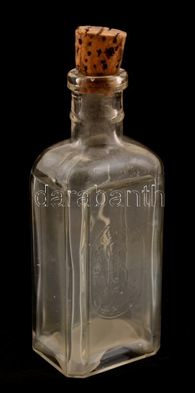 Singer varrógépolajos üvegcse dugóval, apró kopásnyomokkal, m: 14 cm