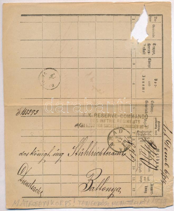 https://www.darabanth.com/en/277-Online-auction/277.0/Other-collectibles/Military~26/1879-Tengeresz-szamara-kiallitott-menetlevel-nemet-nyelven-tobb-pecsettel~II1418690