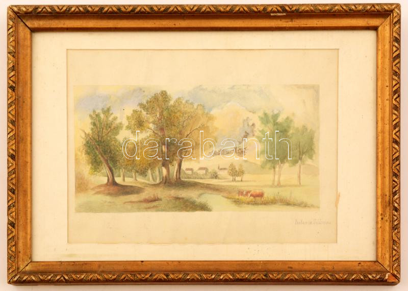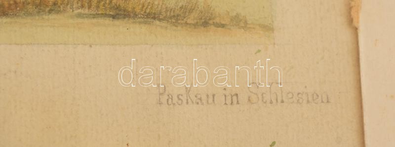 Sziléziai Paskau látképe (Ma Paskov, Csehország), aquarell, papír, jelzés nélkül, paspartuban, fa képkeretben, képkeret: 20x29 cm., 9x18 cm./View of Paskau in Silesia (Today: Paskov, Czeh Republic), aquarell, paper, in paspartu, in wood frame, frame: 20x29 cm., 9x18 cm.