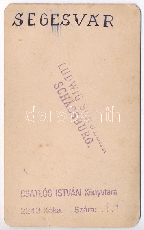 cca 1890 Segesvár, Schässburg, keményhátú fotó Ludwig Schuller segesvári műterméből, hátoldalon feliratozva, könyvtári bejegyzéssel, 10×6 cm