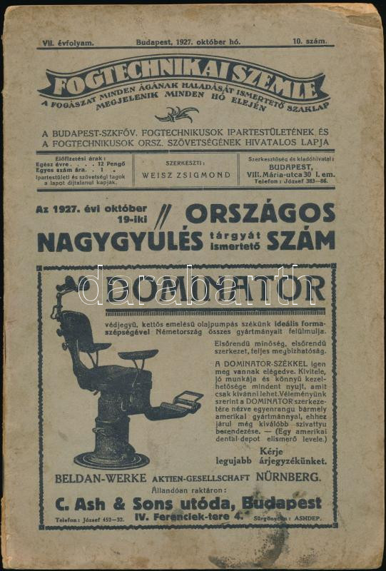 1927-1929 a Fogtechnikai Szemle két lapszáma (7. évf. 10., 9. évf. 3.), érdekes írásokkal, példányonként változó állapotban