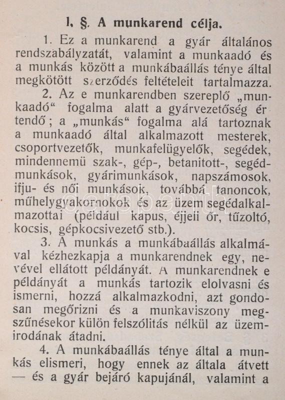 1938 Stühmer Frigyes Rt. Kakaó, Csokoládé, és Cukorárugyár Üzemi Munkarendje. Budapest, Jövő Nyomdaszövetkezet, 16 p. Kiadói papírkötés.