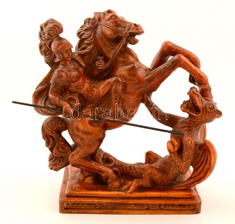 Sárkányölő Szent György műgyanta szobor, m: 20x20 cm