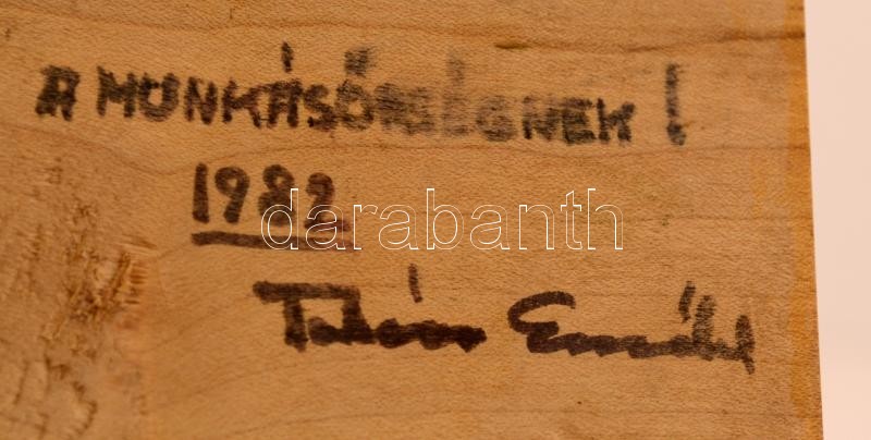 Takács Erzsébet (1928-1999): Stefkó József. Bronz plakett, jelzett, fára ragasztva, hátán a művész aláírásával, 12×13 cm