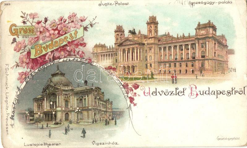 1898 Budapest, Igazságügyi palota, Vígszínház, floral, litho (EK)