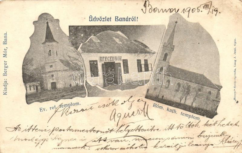 Bana, Evangélikus református és római katolikus templom, Berger Mór üzlete és kiadása (EK)