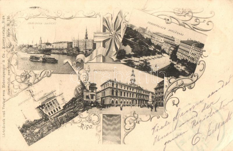 Riga, Deutsches Theater, Rathausplatz / theatre, town hall square, Art Nouveau (EB)