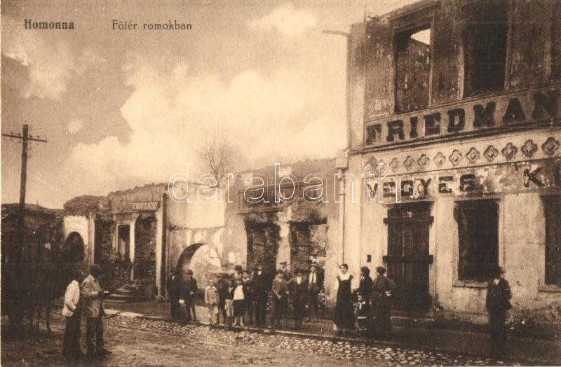 1915 Homonna, Humenné; Főtér romokban, az oroszok betörése után, Fried... https://www.darabanth.com/en/277-Online-auction/277.0/Postcards/Slovakia~300011/1915-Homonna-Humenne-Foter-romokban-az-oroszok-betorese-utan-Friedman-vegyeskereskedes-B~II1420175