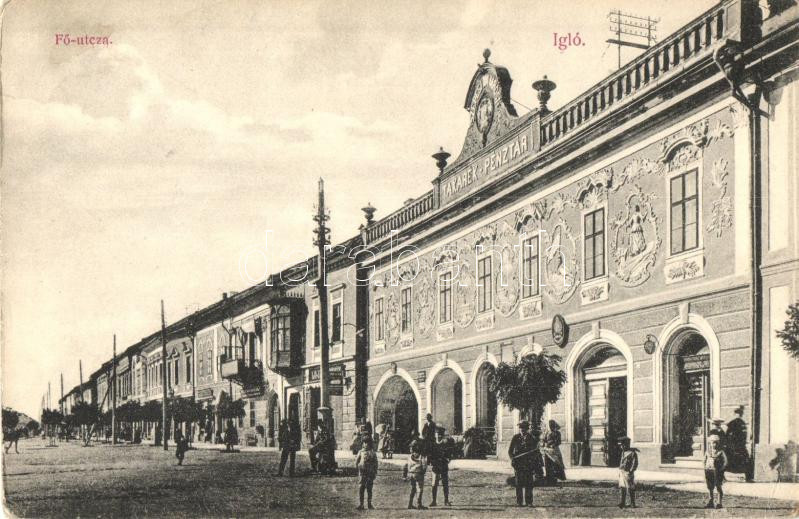 Igló, Iglau Spisská Nová Ves; Fő utca, takarékpénztár, kiadja Dörner Gyula / main street, savings bank (EB)