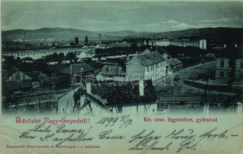 1899 Nagyenyed, Országos fegyintézet, gyáraival; kiadja a Nagyenyedi Könyvnyomda és Papírárugyár Rt. / prison and its factories