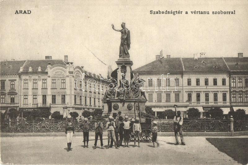 Arad, Szabadság tér, Vértanú szobor, Rozsnyay Gyógyszertár / square, statue, pharmacy