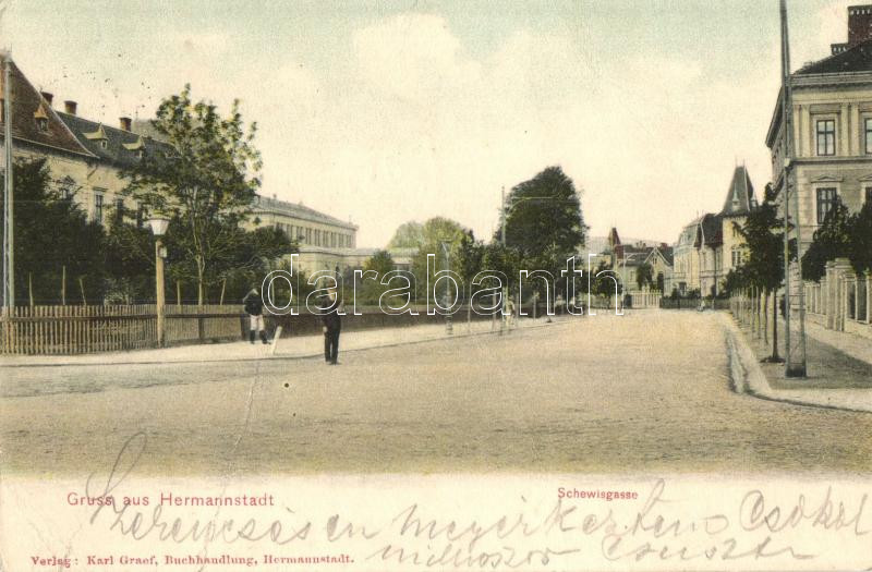 https://www.darabanth.com/en/277-Online-auction/277.0/Postcards/Transylvania~300010/Nagyszeben-Hermannstadt-Sibiu-Schewis-utca-kiadja-Karl-Graef-Schewisgasse-street-fa~II1417252