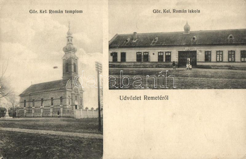 Temesremete, Remetea Mare; Görögkeleti román templom és iskola, kiadja...