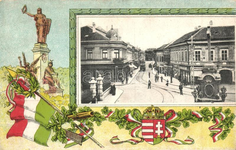 Újvidék, Novi Sad; Duna utca, villamos / street, tram, litho (EK)