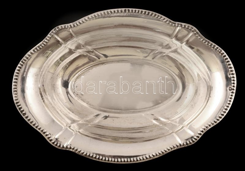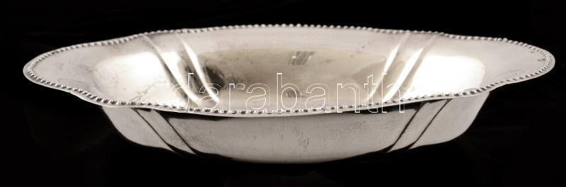 Ezüst(Ag) gyöngymintás peremű tálka, poncolt, jelzett, 20x14x3 cm, nettó: 103,8 g