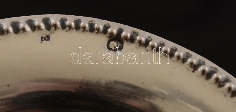 Ezüst(Ag) gyöngymintás peremű tálka, poncolt, jelzett, 20x14x3 cm, net...