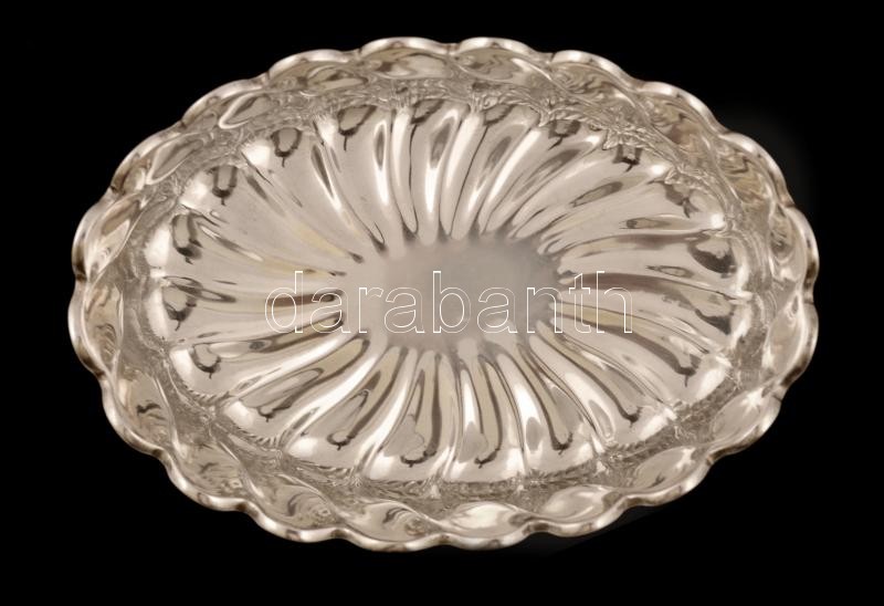 Ezüst(Ag) hullámos falú bonbon kínáló, jelzett, 10,8x15,5x6 cm, nettó. 202,9 g