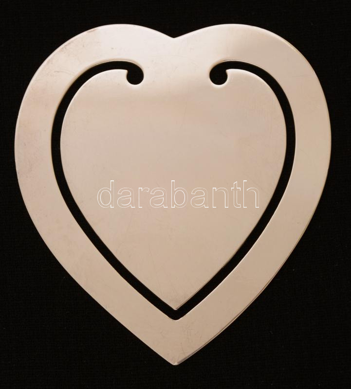 Ezüst(Ag) szív alakú könyvjelző, jelzett, 6,3x5,8 cm, nettó: 20,1 g