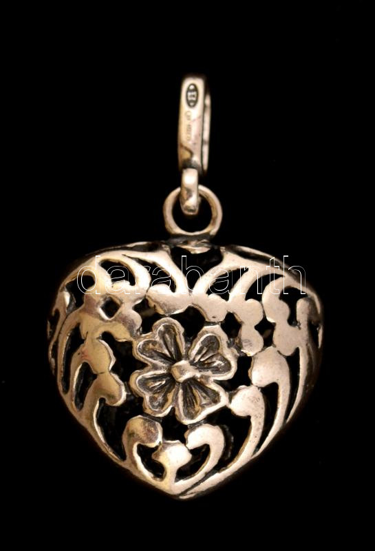 Ezüst(Ag) virágmintás szív alakú függő, jelzett, 3x2,5 cm, nettó: 7,4 ...