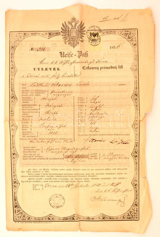 https://www.darabanth.com/en/278-Online-auction/278.0/Other-collectibles/Documents~37/1850-Torna-Utlevel-maganzo-szamara-kiallitva-30-kr-okmanybelyeggel-passport~II1429058