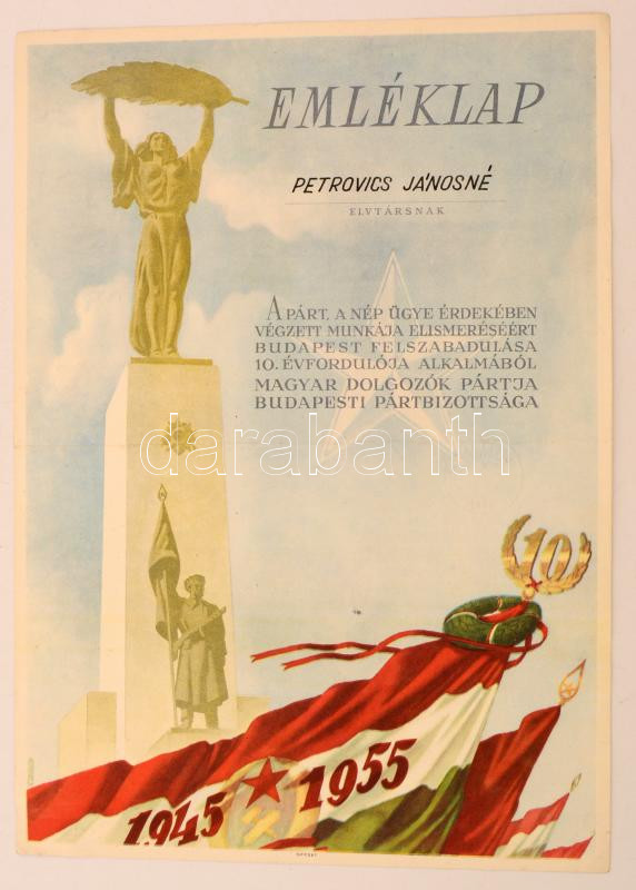 https://www.darabanth.com/en/278-Online-auction/278.0/Other-collectibles/Documents~37/1955-Elismero-oklevel-a-felszabadulas-10-evforduloja-alkalmabol~II1429833