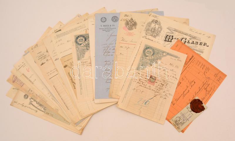 Description: cca 1860-1860 32 db majdnem mind különböző osztrák számla, díszes fejlécekkel illetékbélyegekkel, némelyik feladóvevényekkel / 32 different Austrian invoices
