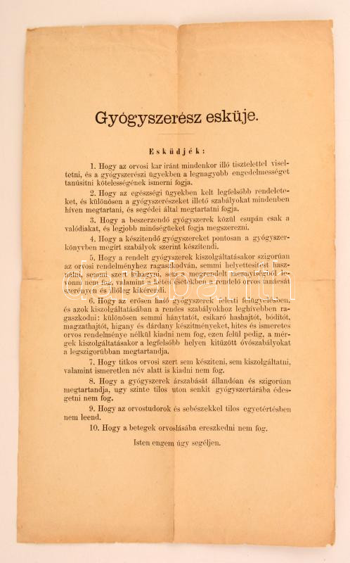 cca 1920 Gyógyszerész esküje, 10 pont