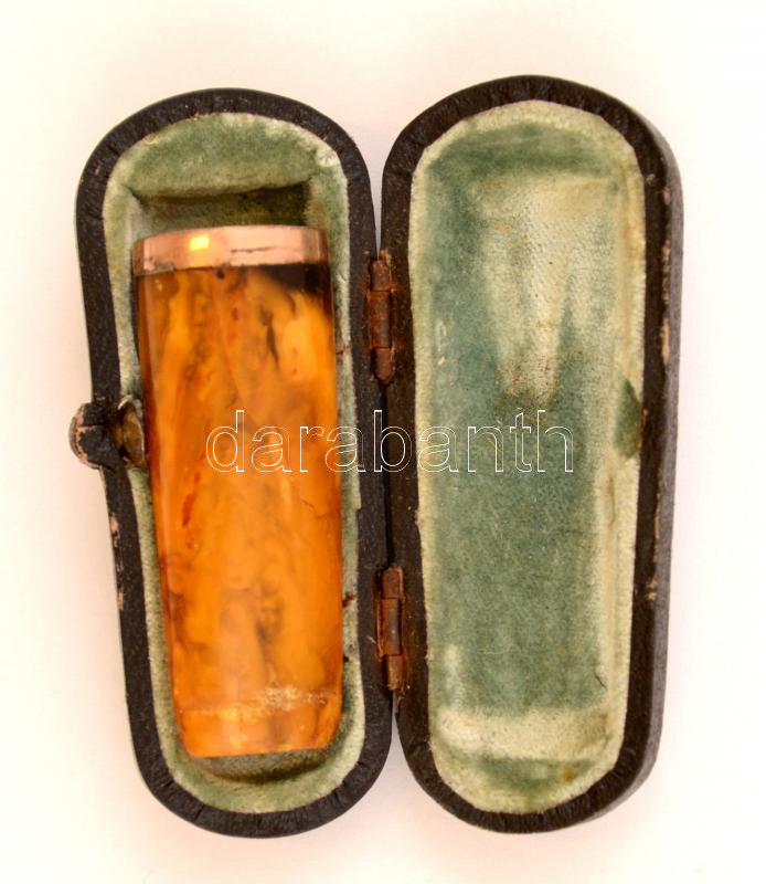Borostyán szipka, eredeti dobozában, h: 5 cm