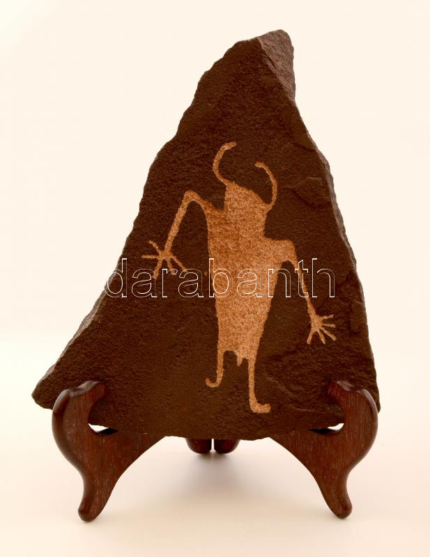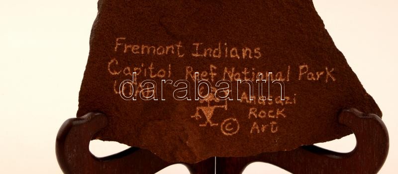 Fremont indián szuvenír szikladarab, fa talapzaton, m: 25 cm