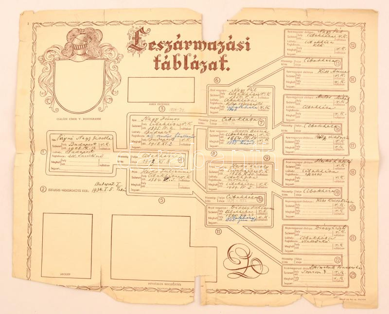 1939 A cibakházai Nagy család leszármazási táblázata, hajtott, szakadásokkal