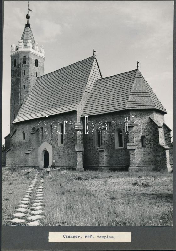 Csenger, református templom, kartonra kasírozott fotó, 22x17 cm