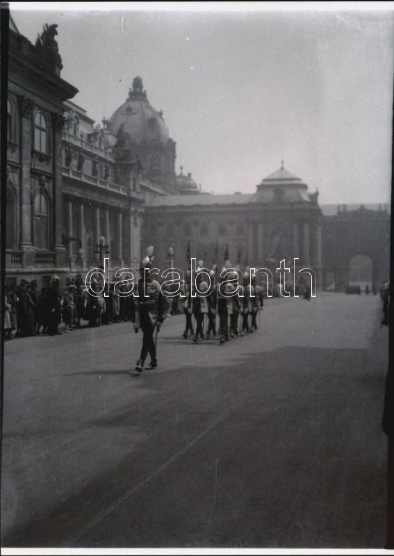 cca 1929 Budapest, budai vár, palota őrség, Kerny István (1879-1963) üveglemez negatívjairól készült 2 db mai nagyítás, 13x18 cm