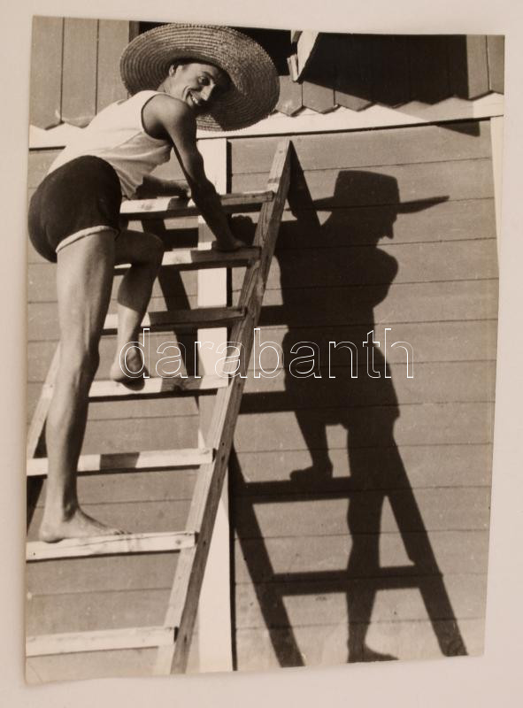 cca 1960 Fel a létrán, jelzés nélküli vintage fotó, sarkán törésnyom, 39x29 cm