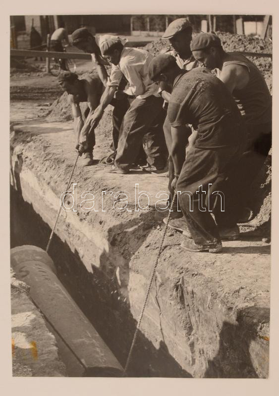 cca 1968 Vincze János: Nehéz munka, feliratozott, kiállítási emlékpecs...