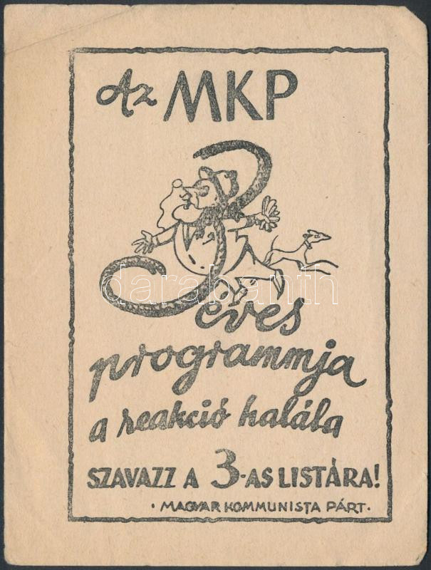 https://www.darabanth.com/en/278-Online-auction/278.0/Other-collectibles/Printed-Materials~5/1946-Az-MKP-3-eves-programja-a-reakcio-halala-szavazz-a-3-as-listara-szorolap-14x10-cm~II1428548