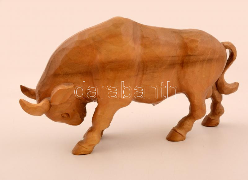 Faragott fa bika, jelzés nélkül, javított, h:28 cm, m:15 cm